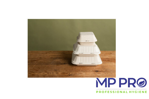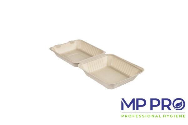 Unité de vente : 100 PCRAVIER REPAS DUNI – BAGASSE CLAMSHELL – 236/231/80 – 1200 ML