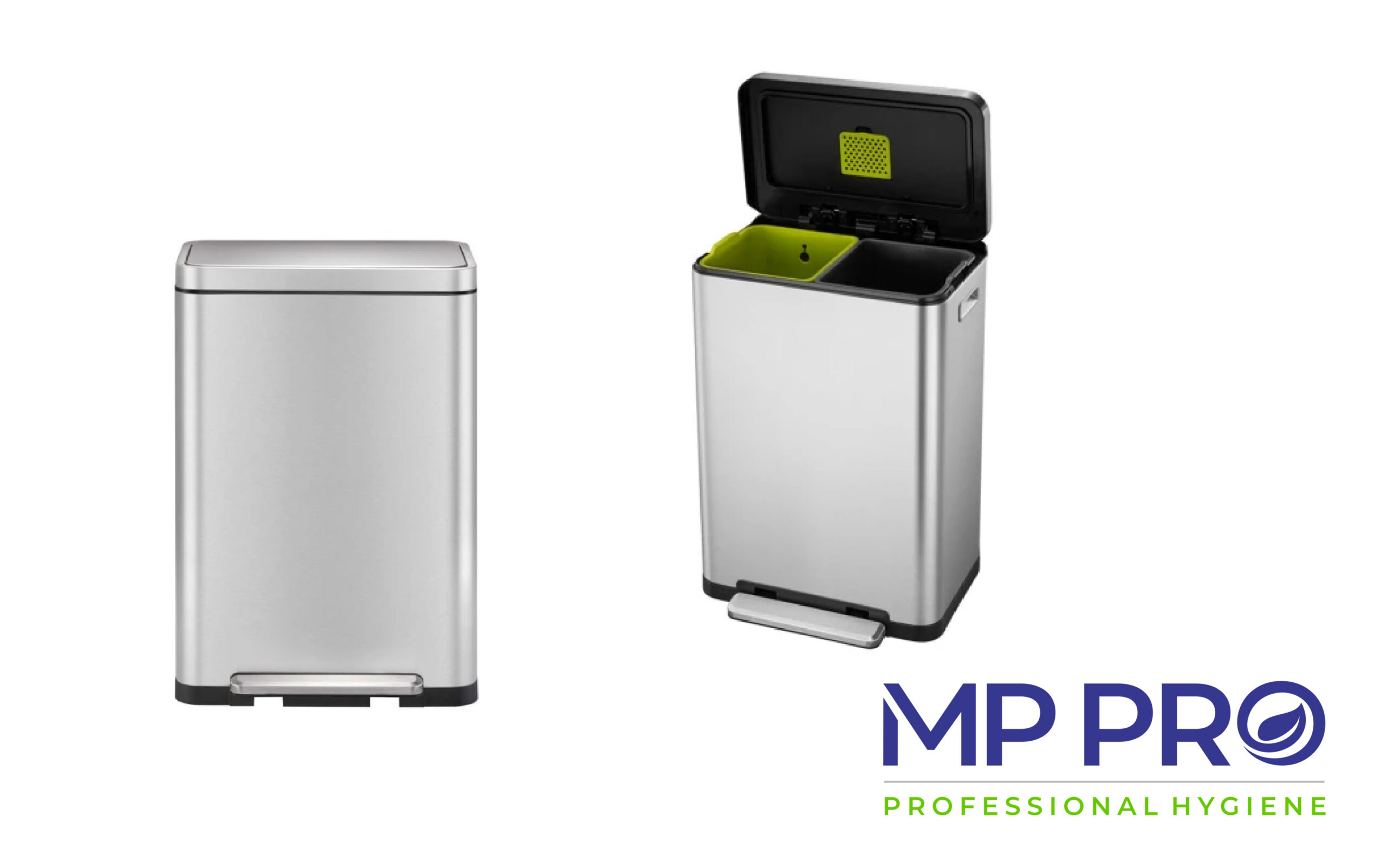 POUBELLE À PEDALE – DESIGN – INOX BROSSÉ – DOUBLE – 2 X 20 L